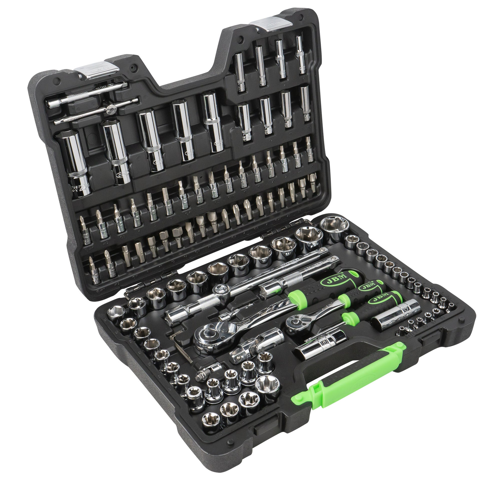 SET DI UTENSILI DA 108 PEZZI CON BUSSOLE ESAGONALI DA 1/4" E 1/2" – FINITURA CROMATA